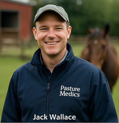 Jack Wallace, originally from Gloucestershire, graduated from Nottingham University in 2015. He began his career at Rowe Equine Clinic, gaining valuable experience in ophthalmology. After completing an internship at Oakham Veterinary Hospital, Jack joined Pasture Medics in 2018, focusing on medical investigations, ophthalmology, and routine ambulatory work. A lifelong horseman, he has also competed in point-to-points.